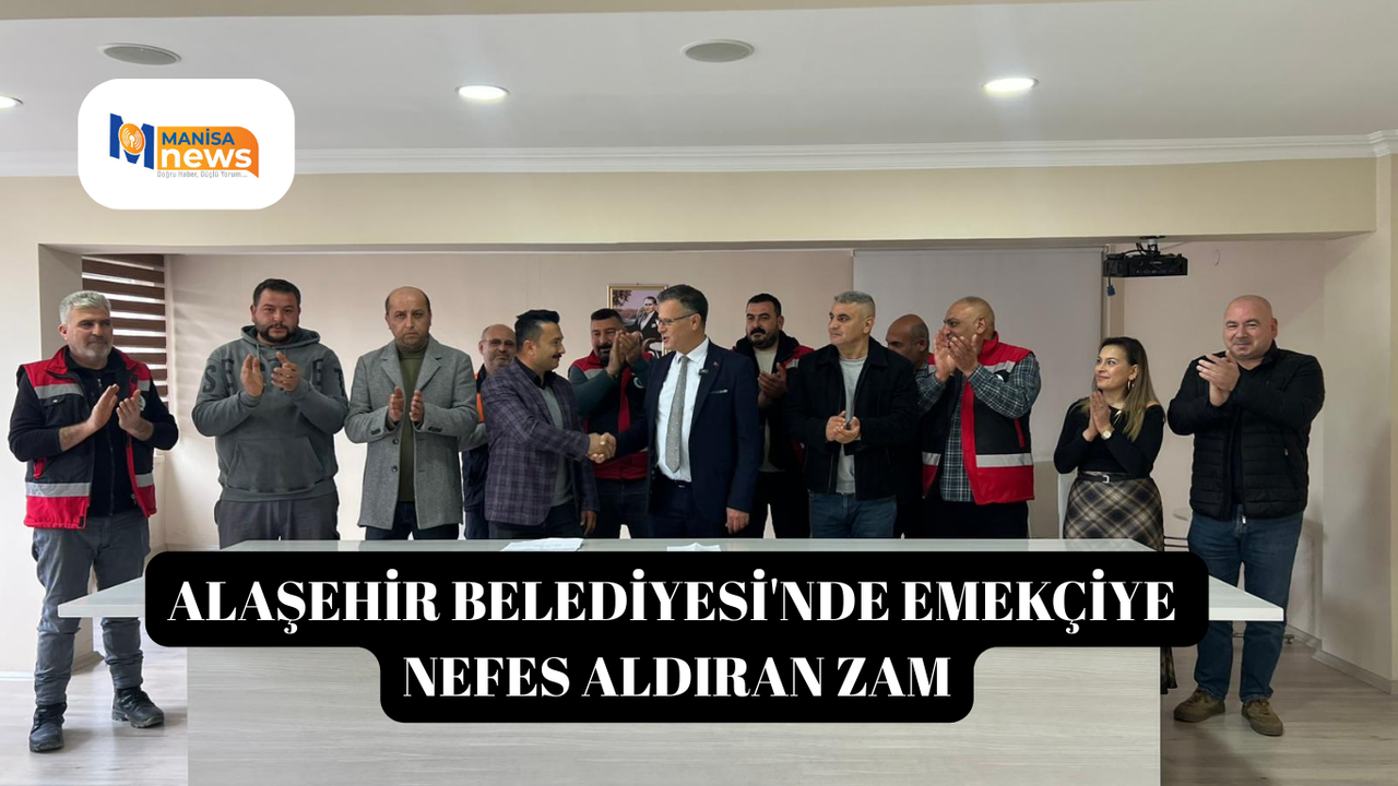 Alaşehir Belediye Başkanı Ahmet Öküzcüoğlu, Belediye-İş Sendikası Temsilcisi Devrim Dinçer ve belediye çalışanlarının katılımıyla düzenlenen toplantıda 2026 yılı maaş zamları kamuoyuyla paylaşıldı. Geçtiğimiz yıl imzalanan toplu iş sözleşmesi kapsamında, 2026 yılı için zam oranı enflasyon artı 5 puan olarak uygulanırken, toplam 417 belediye çalışanı yapılan artıştan yararlandı.