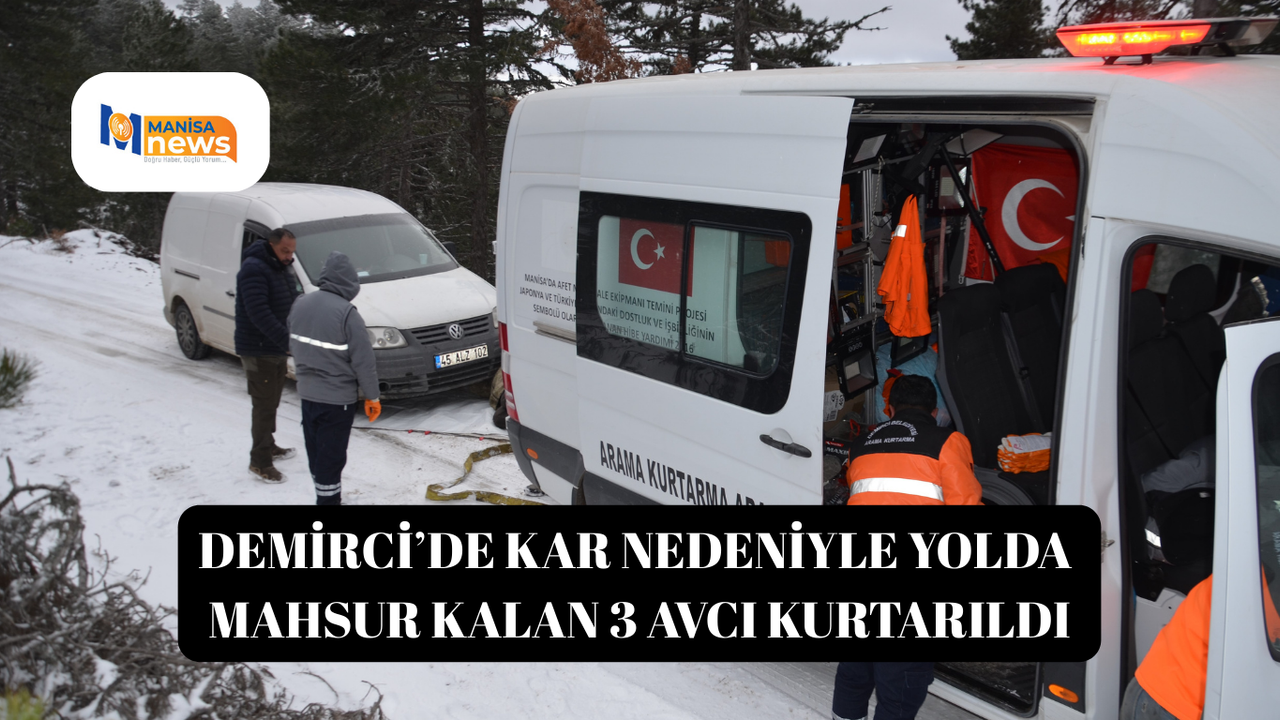 Alaşehir Avcılar ve Atıcılar Kulübü'nün eski başkanı Murat Yılmaz ile beraberindeki İsmail Gelin ve Çağlar Gökkaya, karlı havada av yapmak için Demirci Dağı’na geldi. 1530 rakımlı Hışırca Kaya mevkiinde yoğun kar yağışı nedeniyle araçlarıyla yolda kalan avcılar, Demirci Belediyesi’nden yardım talebinde bulundu.