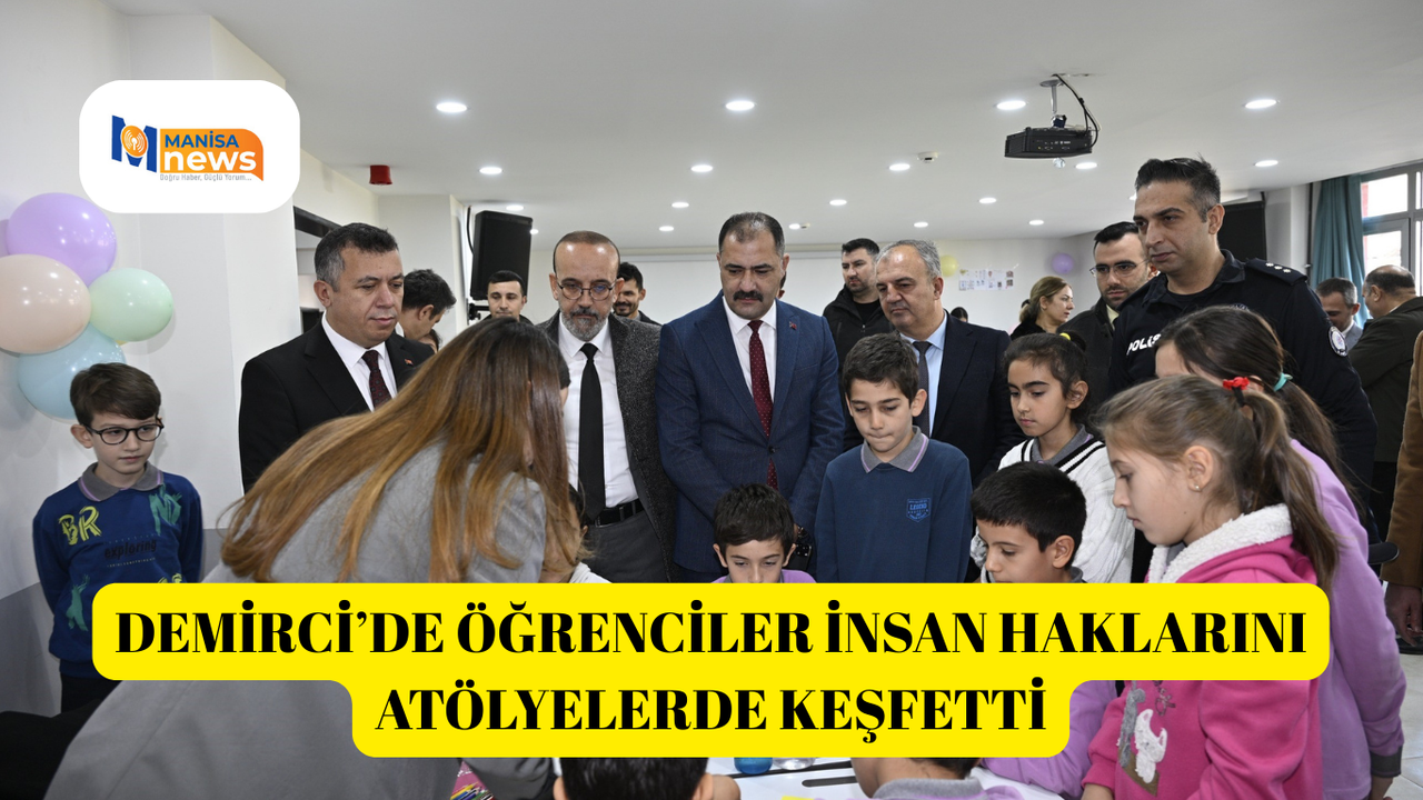 Manisa’nın Demirci ilçesinde 10 Aralık Dünya İnsan Hakları Günü kapsamında Cengiz Topel Enver Armağan İlkokulu’nda kutlama programı düzenlendi. Programa Demirci Kaymakamı Fatih Bayram, Belediye Başkanı Erkan Kara, MCBÜ Demirci Eğitim Fakültesi Dekanı Prof. Dr. Fatma Şaşmaz Ören, İlçe Milli Eğitim Müdürü Bilal Çetinkaya ve ilçe protokolü katılarak öğrencilerin etkinliklerine eşlik etti.