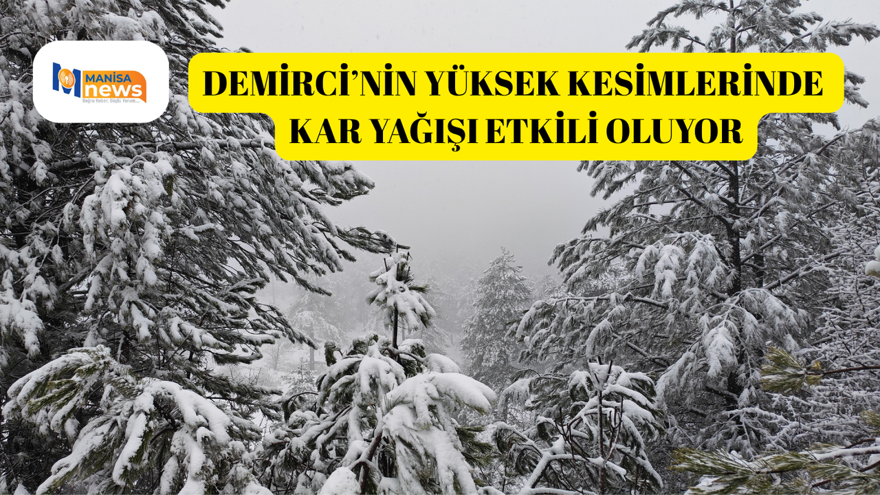 Manisa'nın Demirci ilçe merkezinde sağanak yağmur etkisini sürdürürken, ilçenin yüksek kesimleri olan 1470 rakımlı Akçakertik mevkii, Türkmen Dağı ve Bardakçı Mahallesinde kar yağışı etkili oluyor.