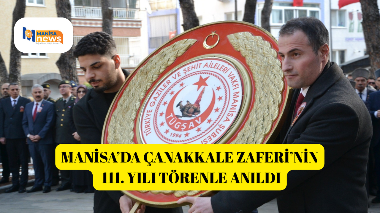 Manisa’da 18 Mart Şehitleri Anma Günü ve Çanakkale Zaferi’nin 111. Yıldönümü kapsamında tören düzenlendi. Manisa Garnizon Şehitliğinde düzenlenen törene Manisa valisi Vahdettin Özkan, MHP Grup Başkanvekili ve Manisa Milletvekili Erkan Akçay, Manisa Büyükşehir Belediye Başkanı Besim Dutlulu, Manisa Garnizon Komutanı Tuğgeneral Birol Arslan, Manisa Cumhuriyet Başsavcısı Kurtca Eker, Manisa Celal Bayar Üniversitesi Rektörü Prof. Dr. Rana Kibar, protokol üyeleri, siyasi parti ve sivil toplum kuruluşu temsilcileri, gaziler ve şe0hit yakınları, öğrenciler katıldı. Vali Vahdettin Özkan, Garnizon Komutanlığı, Büyükşehir Belediye Başkanlığı ve Türkiye Harp Malulü Gaziler Şehit Dul ve Yetimleri Derneği Manisa Şube Başkanlığı, Türkiye Muharip Gaziler Derneği Manisa Şubesi Başkanlığı, Manisa Şehit Aileleri Koruma ve Kalkındırma Derneği Başkanlığı, Türkiye Şehit Aileleri ve Gaziler Vakfı Manisa Şube Başkanlığı ve Manisa Şehit Aileleri ve Gaziler Derneği anıta çelenk sundu. Askerler tarafından 3 el saygı atışı yapıldı. 1 dakikalık saygı duruşunda bulunuldu, İstiklal marşı okundu. Günün anlam ve önemini belirten konuşmayı yapan Türkiye Harp Malulü Gaziler Şehit Dul ve Yetimleri Derneği Manisa Şube Başkanı Yusuf Kıyışkan, "Bugün 18 Mart Bugün, Çanakkale’yi geçilmez kılan imanın, cesaretin ve fedakârlığın günüdür. Çanakkale sadece bir savaş değildir. Çanakkale bir milletin dirilişidir. Çanakkale, 'Buradan öteye geçemezsiniz' diye tarihe vurulmuş bir mühürdür. Orada yalnızca toprak savunulmadı. Orada vatan savunuldu. Bayrak savunuldu. Ezan savunuldu" dedi.