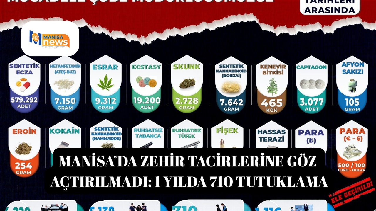 Manisa İl Emniyet Müdürlüğü, uyuşturucu veya uyarıcı madde ticareti yapan, nakleden ve kullanan şahıslara yönelik 1 Ocak - 31 Aralık 2025 tarihleri arasında gerçekleştirilen çalışmaların bilançosunu açıkladı. Narkotik Suçlarla Mücadele Şube Müdürlüğü koordinesinde; Akhisar, Alaşehir, Salihli, Soma ve Turgutlu büro amirliklerinin de katılımıyla il genelinde zehir tacirlerine adeta savaş açıldı.