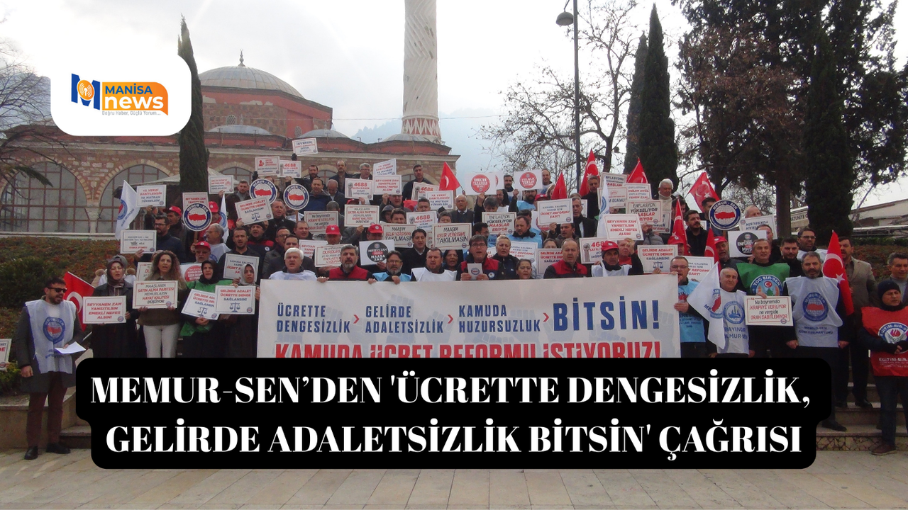 Memur-Sen Manisa İl Temsilcisi ve Eğitim Bir Sen Manisa 1 Nolu Şube Başkanı Ahmet Yasav, 2026 yılının memurlar için ilk maaş gününde Hatuniye Camii önünde basın açıklaması yaptı. Açıklamaya Memur-Sen’e bağlı sendikaların il başkanları, temsilcileri ve çok sayıda üye destek verdi.