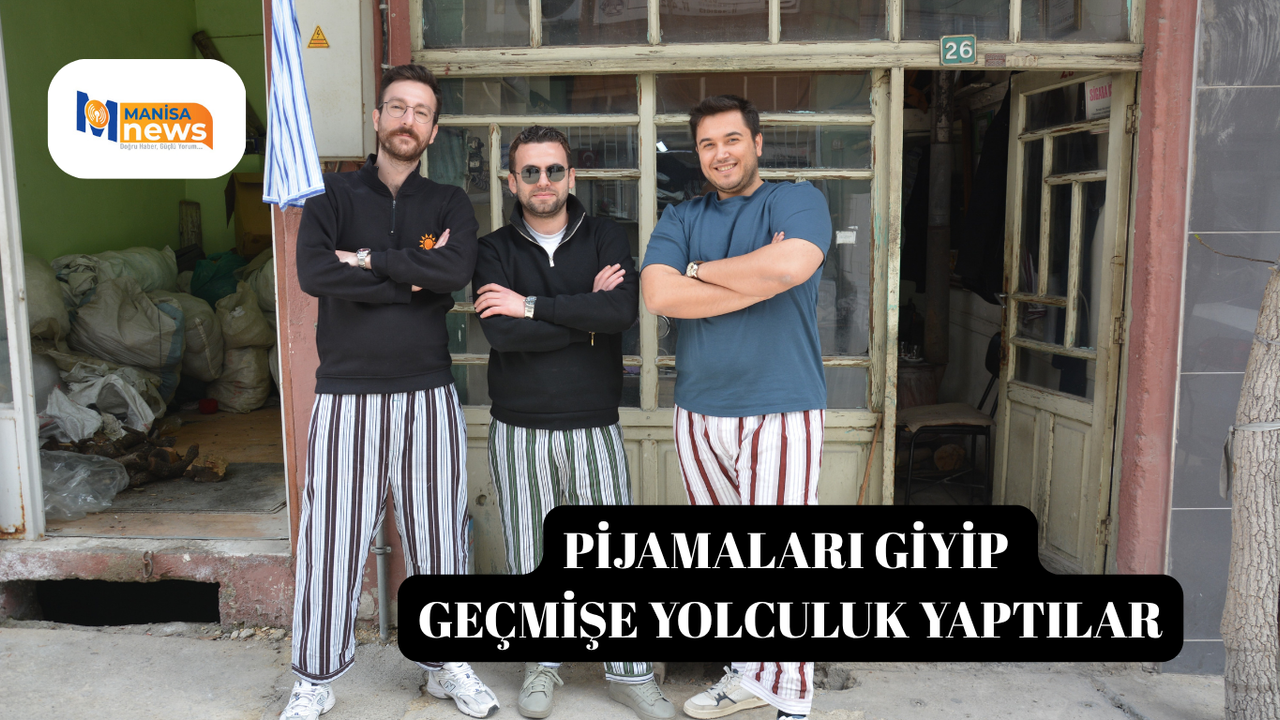 Demirci Devlet Hastanesi’nde görev yapan doktorlar Yiğit Can Yıldırım, Mustafa Sunar ve Süleyman Akıncı, Hacıhasan Mahallesi’nde bulunan 12 metrekarelik dükkânında 77 yaşındaki terzi Yaşar Öztemel’i ziyaret etti. İlçenin geçmişine ışık tutan buluşmada doktorlar, bir dönemin simgesi haline gelen çizgili pijamaları giyerek renkli görüntüler oluşturdu.