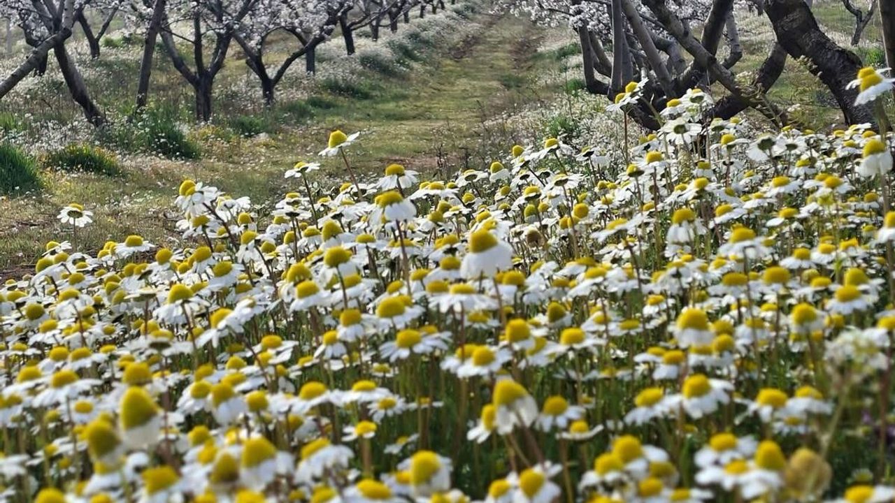 Mahalle sakinlerinden Halil Uygun, yıllar önce İlçe Tarım ve Orman Müdürlüğü tarafından bodur badem fidanlarının bölgeye dikildiğini belirterek, "Yıllar önce İlçe Tarım ve Orman Müdürlüğü tarafından elle kırılabilen bodur badem fidanları dağıtılmıştı. Tarla komşumuz da 5-6 dekarlık tarlasına bu fidanlardan dikmişti. Şimdi tüm badem ağaçları çiçek açtı. Toprak yeşerdi, papatyalar açtı. Ortaya çıkan manzara bizleri dinlendiriyor. Buraya ailece gelip fotoğraflar çekiliyoruz." dedi.