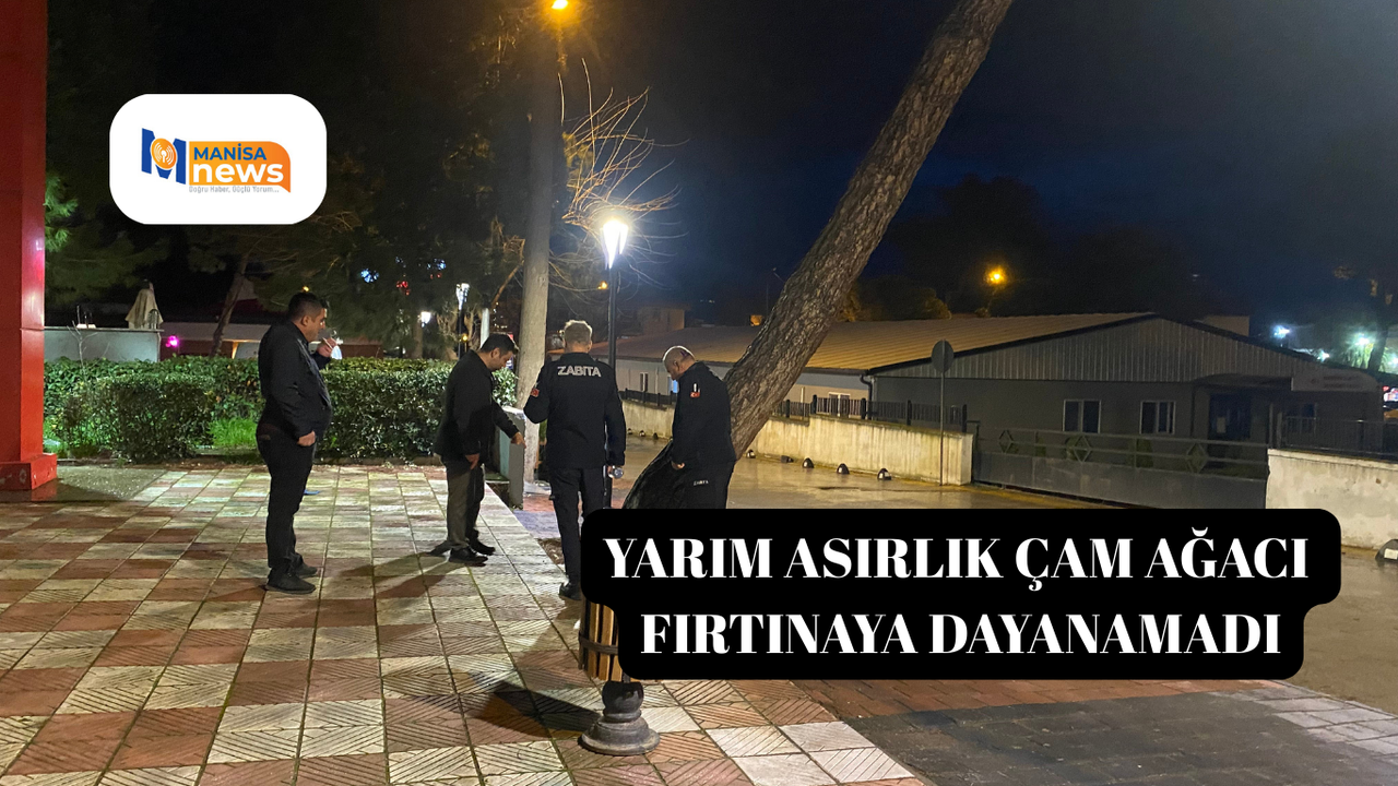Olay, gece saatlerinde Alaşehir'in Yenice Mahallesi Kuvayı Milliye Caddesi üzerinde, Kongre Parkı önünde meydana geldi. Kongre Parkı ile Adliye Sarayı arasında kalan bölümde bulunan yaklaşık 50 yıllık çam ağacı, fırtınanın etkisiyle kökünden yan yattı.